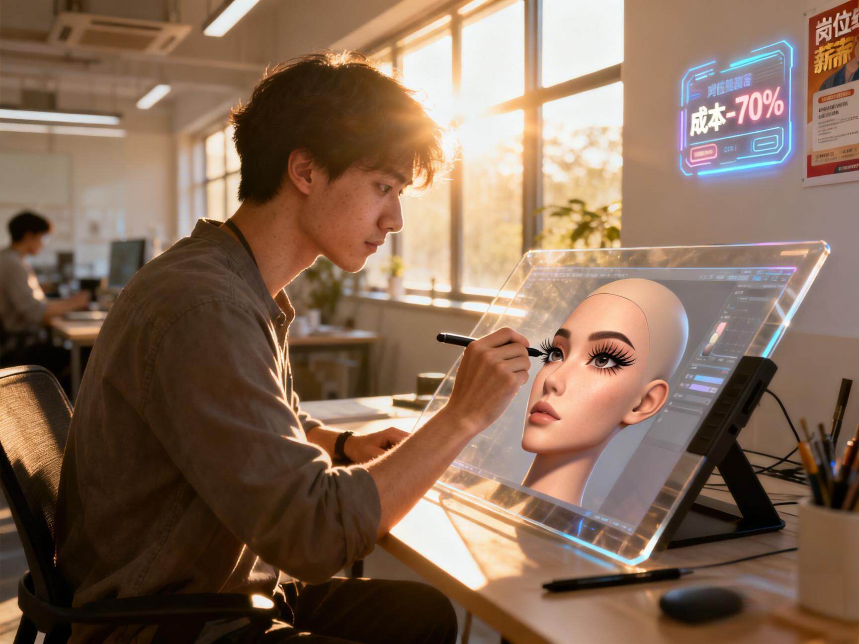 AIGC工具的辅助作用,不仅降低了数字人相关岗位的入门难度,还大幅提升了创作效率。美术生可以借助AIGC工具快速完成基础创作,然后通过自身的专业能力优化作品,提升作品质量。这种技术赋能的模式,让更多具备优秀审美能力的美术生能够进入数字人领域,实现专业技能的转化。