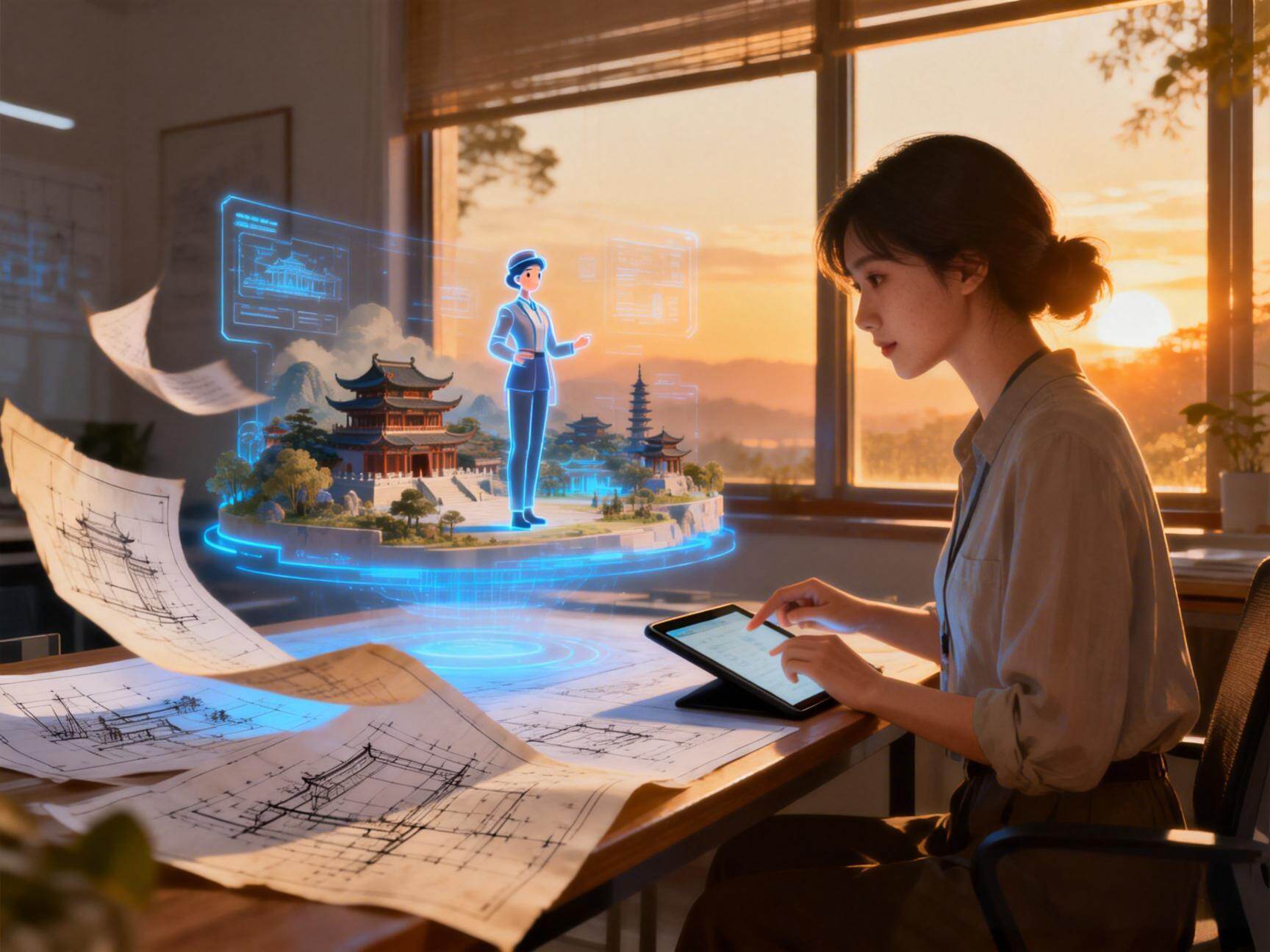 AIGC技术则大幅降低了数字空间文旅内容的创作成本,提升了生产效率。此前,虚拟景区、数字人导游、沉浸式场景等内容的制作,需要投入大量人力、物力和时间进行人工建模、设计,不仅成本高昂,还难以实现规模化产出。AIGC技术能够快速生成各类虚拟内容,无论是复刻现实场景的虚拟景区,还是具备交互能力的数字人导游,都能通过AI工具高效完成。这不仅降低了文旅企业的投入成本,还能根据用户需求快速迭代内容,丰富数字空间文旅的体验维度。