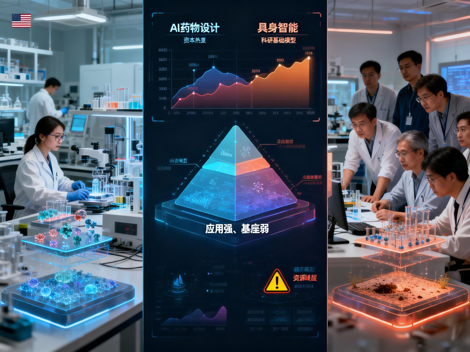相比之下,我国在AI辅助科学研究领域尚未形成同等规模的全栈式响应,呈现出“应用强、基座弱”的不均衡特点。当前,我国在科学基础模型方面的进展相对滞后,这成为制约我国在该领域缩小与美国差距的核心问题。同时,和AI辅助药物设计、具身智能等赛道相比,AI辅助科学研究在资本领域关注度较低,依靠初创企业打造基础模型的难度较大。因此,我国科学基础模型的研发,还需要各方资源的倾斜和整合。