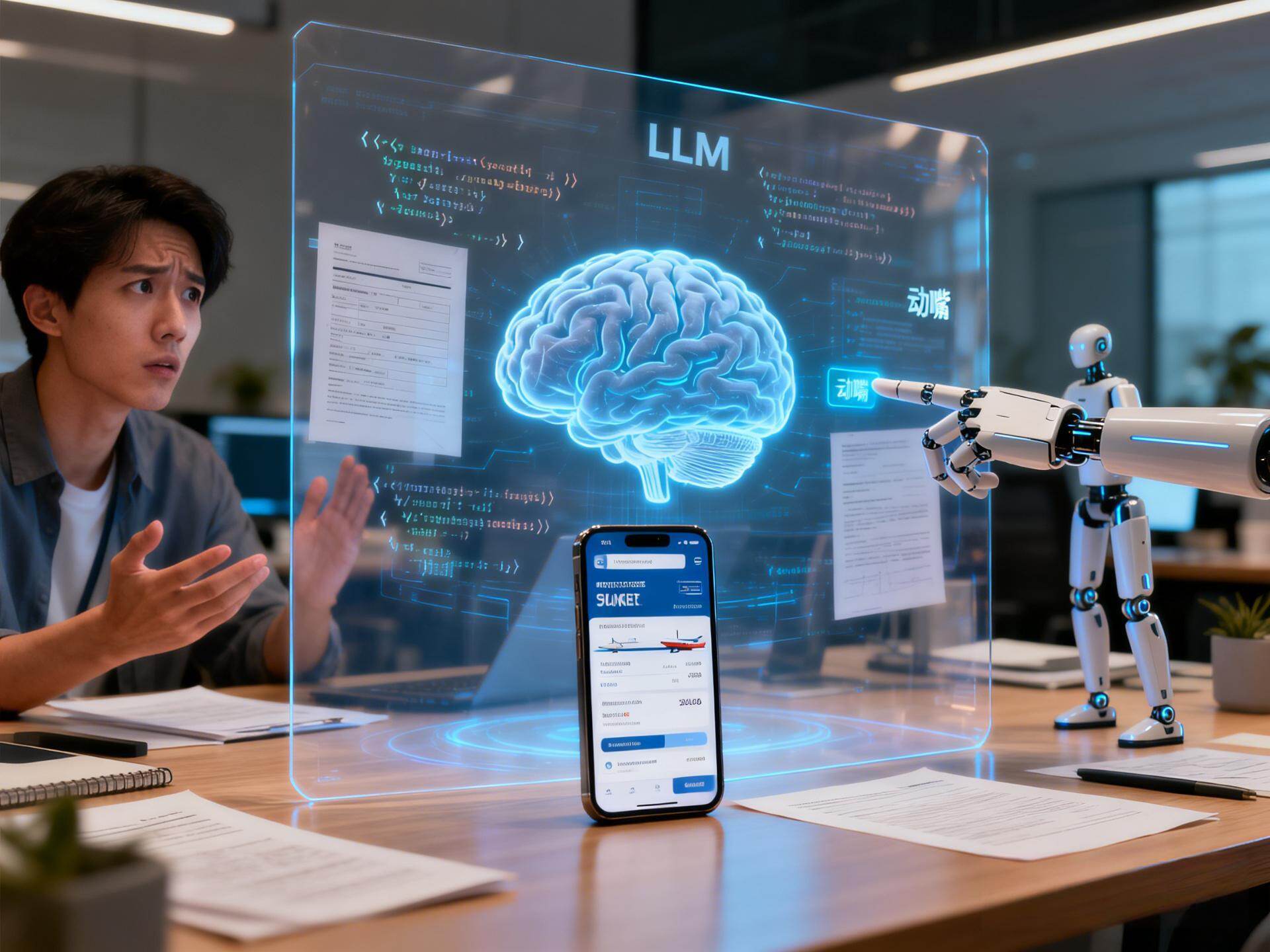 解释:我们前面说过,LLM就像一个超级大脑,很聪明,能回答各种问题、生成各种内容,但它有一个很大的局限——只能“动嘴不动手”。比如你让它写代码,它能写出完整的代码;你让它查资料,它能整理出相关资料;但你让它“帮我订一张明天从北京到上海的机票”,它就傻眼了——因为它没有“手”和“脚”,无法直接操作手机、电脑上的软件,也无法执行具体的行动。
