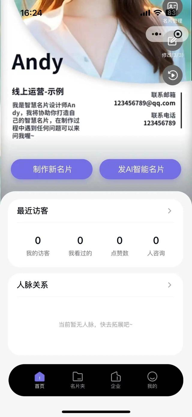 6.分享与使用:将制作好的AI名片分享到社交媒体、邮件、短信等渠道,与他人进行交换和互动。