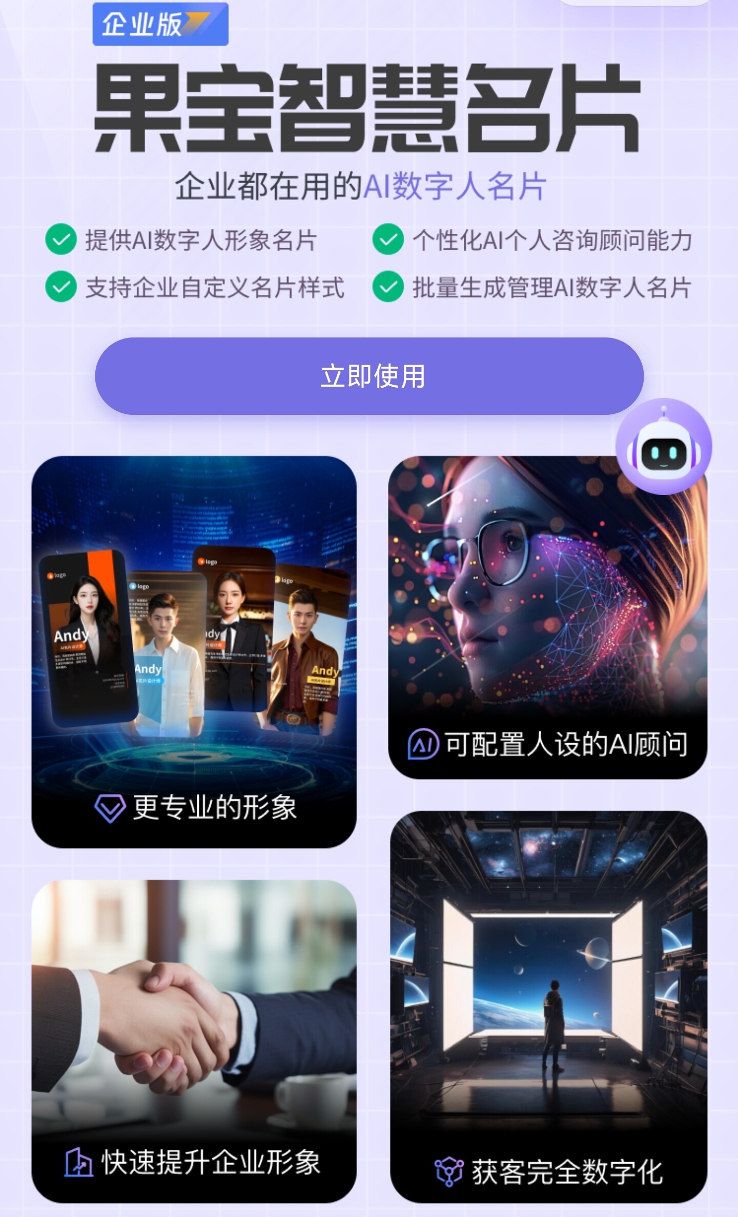 果宝AI智能名片打破传统销售模式,为企业和销售人员赋能,助力企业快速获客、高效转化、轻松管理。凭借微信10亿用户的社交流量,充分挖掘其价值,加速传播,拓展更多营销渠道,尤其适合高客单价、低频次消费群体。