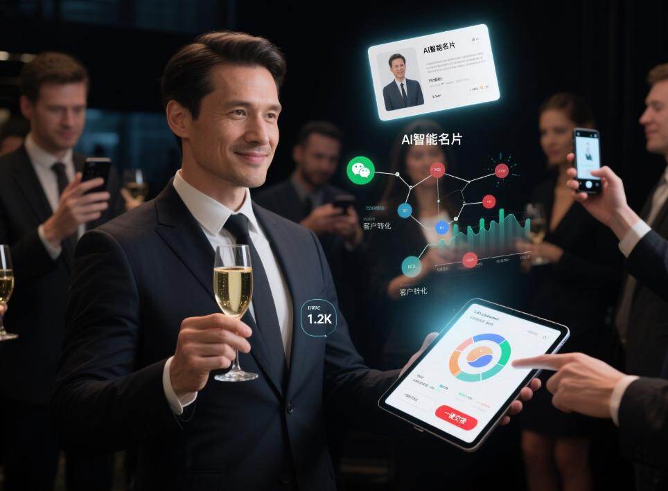 传统展会中,销售需手动记录客户信息,遗漏率高达35%。而AI智能名片通过NFC触碰或二维码扫描,10秒内完成信息交换并自动生成访客报告,使参展企业客户转化率提升50%以上;