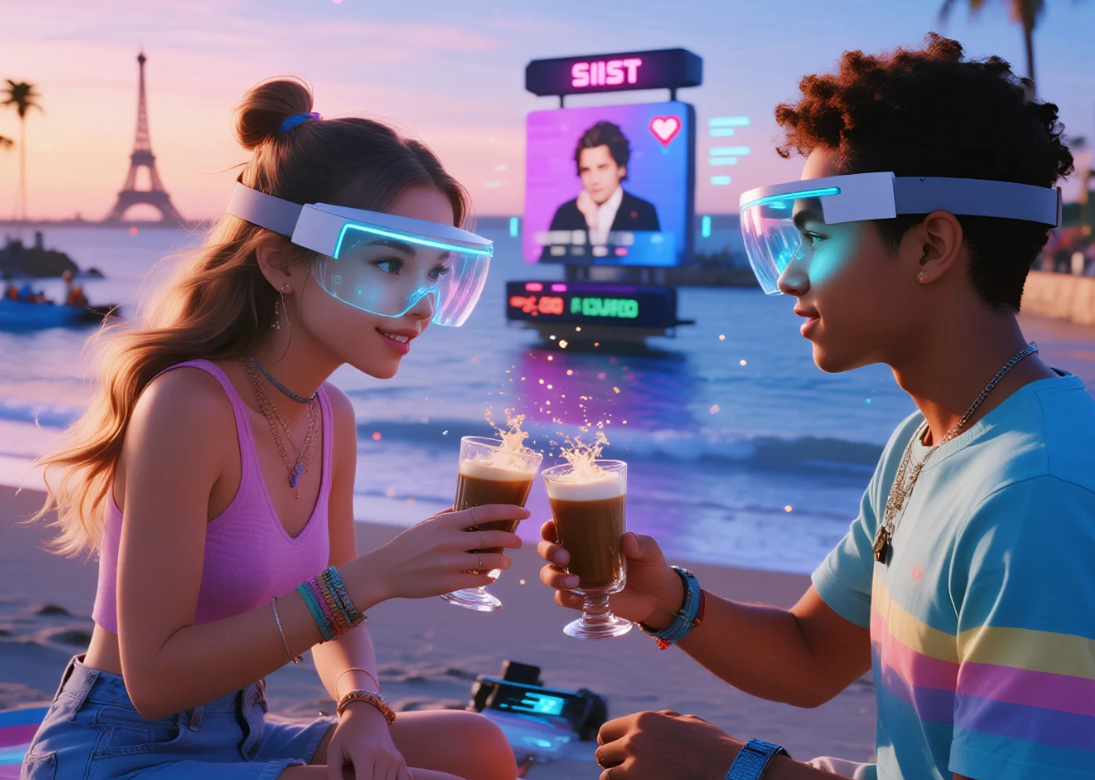 戴上轻便的头显,你瞬间置身于阳光明媚的虚拟海滩咖啡馆。远在巴黎的闺蜜正举着她的虚拟咖啡杯朝你眨眼:“这家的‘数字拿铁’口感绝了!”隔壁桌有几位刚在“宇宙矿场”游戏里组队通关的陌生人,正热火朝天地约着晚上一起去看某位国际巨星的数字空间全息演唱会——在那里,你将不再是被屏幕隔开的观众,而是能挤到“前排”,甚至有机会让偶像的虚拟形象对你专属比心。