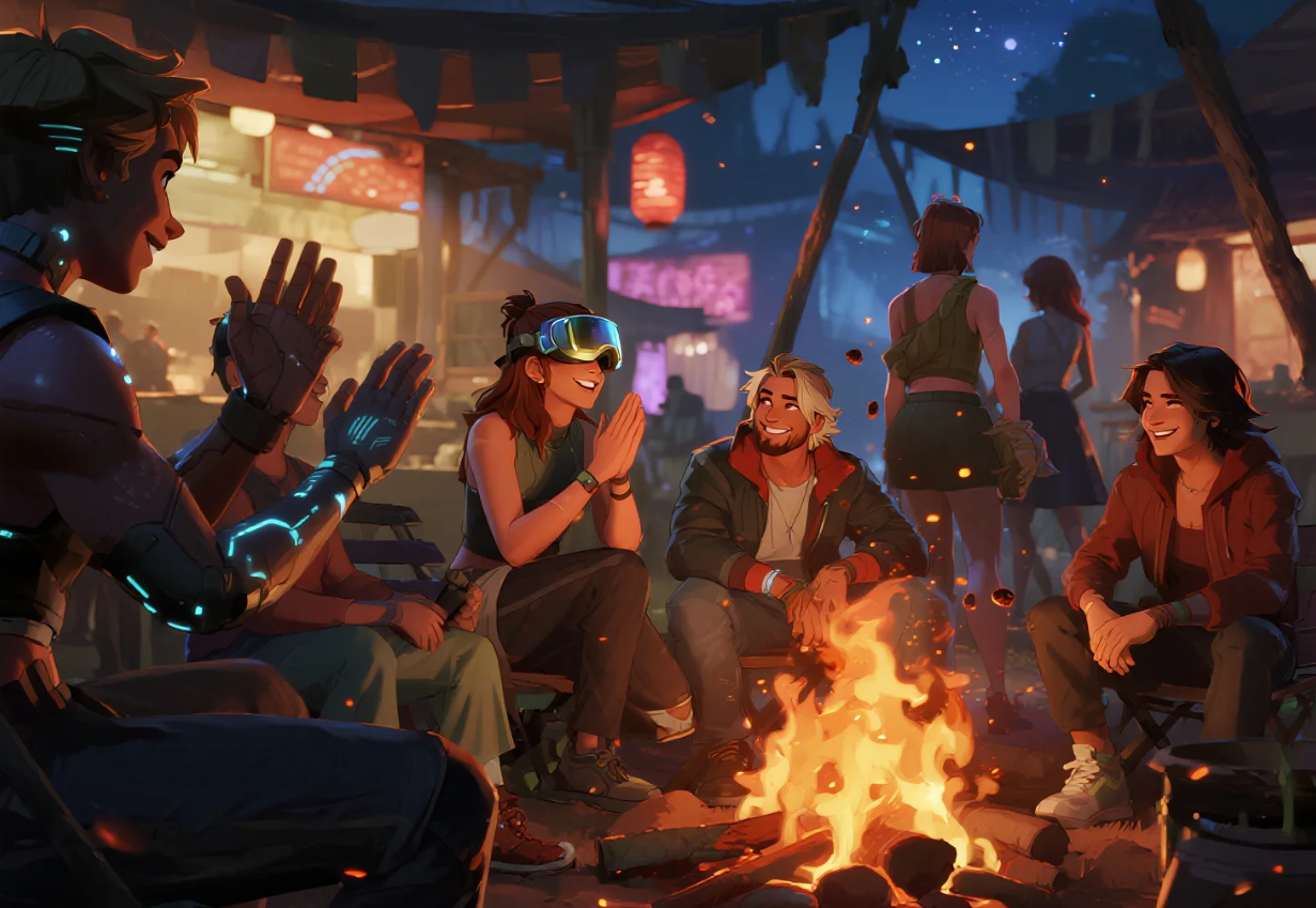 打破“格子间”式社交:告别微信列表里一排排冰冷的头像!数字空间里,你和朋友“身处”同一个三维空间——围坐在虚拟篝火旁聊天,在星空下漫步,或在热闹的虚拟市集并肩“逛街”。距离感被空间共享的亲密感取代;