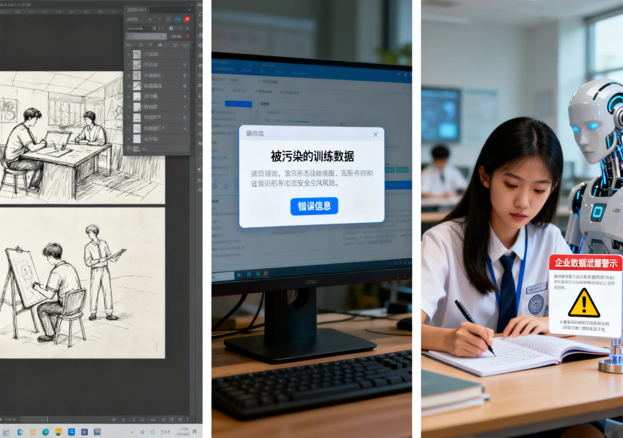 以生成式人工智能为例,其广泛应用已彻底改变了内容创作、客户服务、代码编写等多个行业的生产模式。但随之而来的问题与风险也不容小觑。在意识形态安全领域,大型模型在数据训练环节易遭受污染和恶意操纵,可能导致算法偏见和错误信息传播。在教育与科研领域,人工智能生成内容的质量参差不齐,过度依赖AI完成课业和研究,可能削弱人类的批判性思维和研究能力,导致虚假信息和低质成果泛滥。在商业领域,数据的深度应用引发了合规风险、版权纠纷和商业秘密泄露等一系列问题。