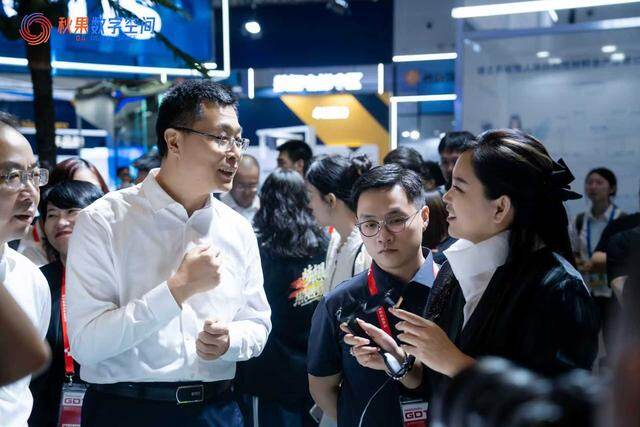 媒体记者们对秋果的“硬件+系统+生态”的创新模式表现出浓厚兴趣,现场采访了秋果技术团队。展位前人头攒动、气氛热烈,成为数贸会首日最热门的“打卡点”之一。